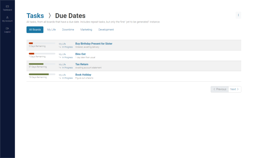 Check back daily and update your tasks and be aware of any due dates. Know what status existing tasks are in, and what to work on next. Resuming work is a breeze. It’s really that simple.